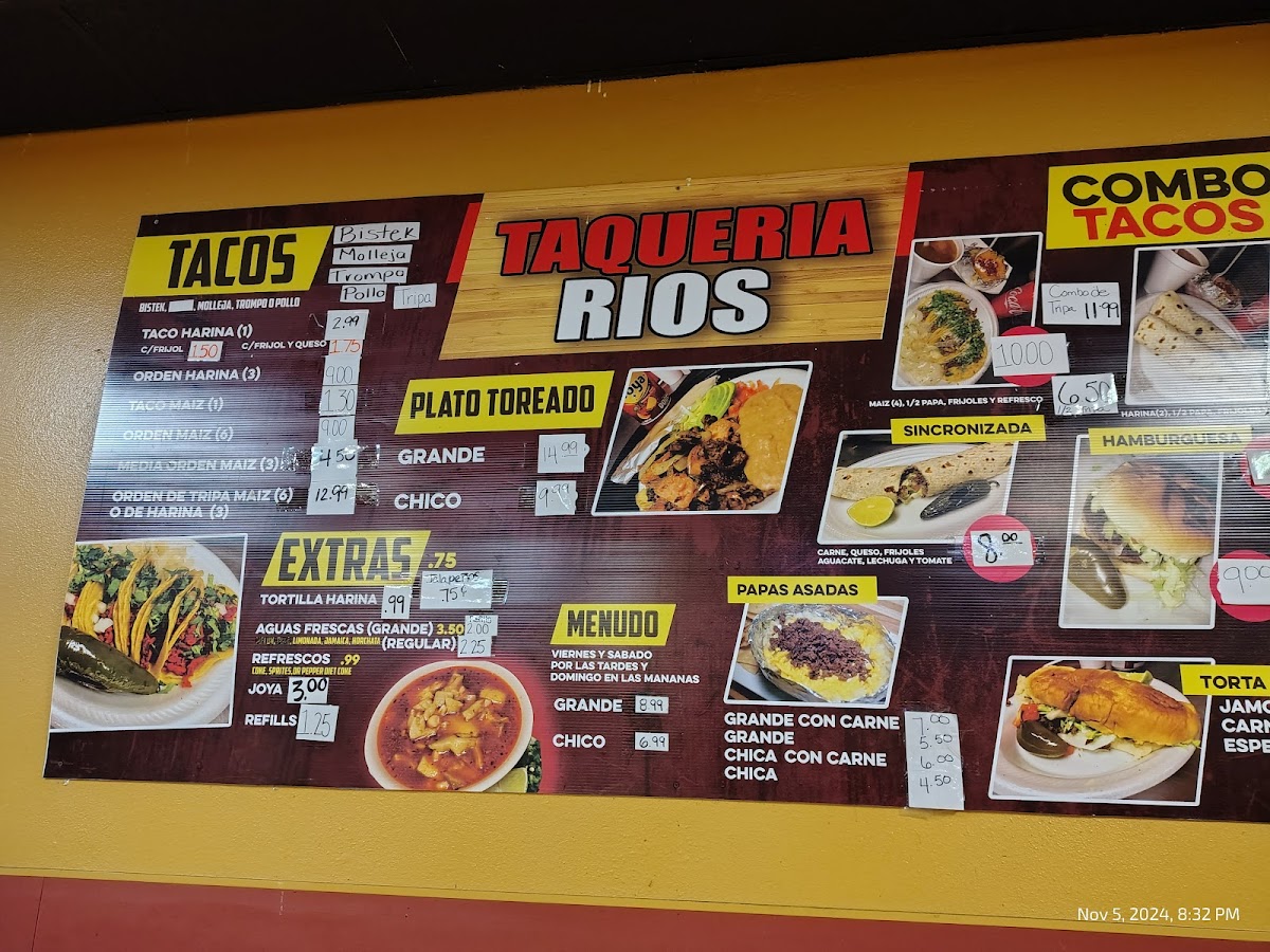 The menu offers a variety of traditional Mexican dishes with a focus on tacos, tortas, and hearty combinations. Food items are categorized mainly into tacos, tortas, and soups, with additional side options available. Customers can choose from taco orders served on corn or flour tortillas, including individual tacos and combination plates.
